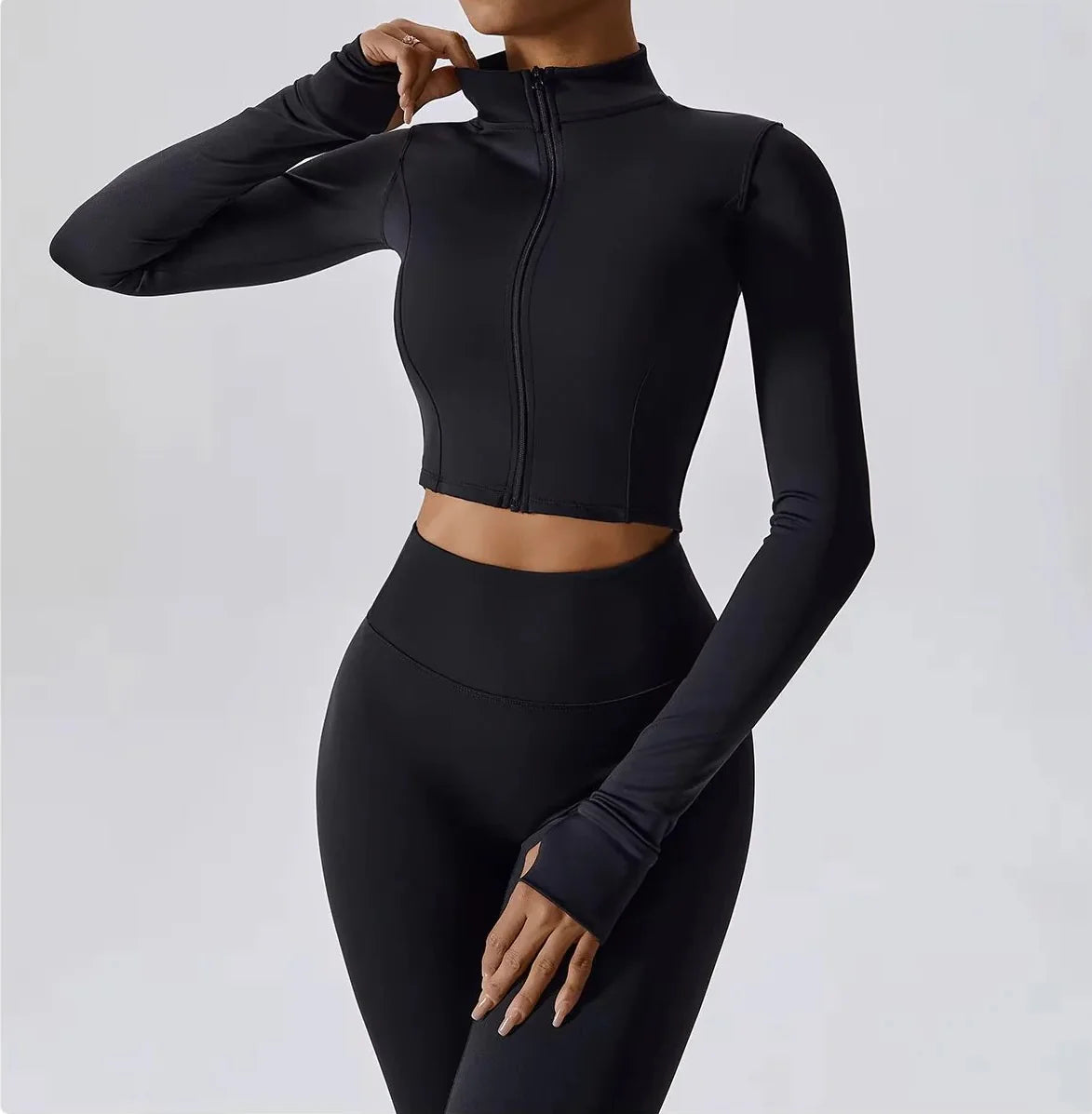 2-Piece Set: Includes a long sleeve zip-up top and high-waist leggings